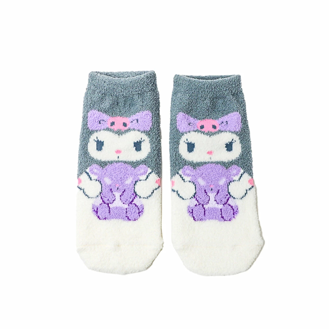 Keep your toes warm and your feet supercute with Kuromi Cozy Face Socks! These plush socks will warm you up with a big smile.