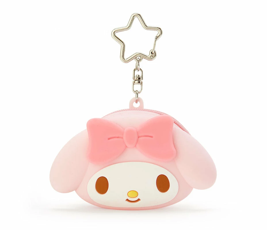 This My Melody Mini Pouch Charm can hold small items and look cute clipped to a tote or backpack! – 4.5inch L x 3inch H x 1.25inch D- zipper closure and clip attachment- silicone pouch
